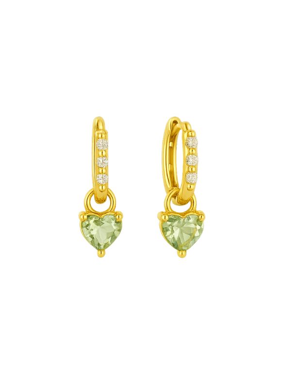 A delicate blend of modern elegance and soft romantic charm. Designed with a sparkling row of cubic zirconia stones, each hoop gently catches the light while a heart-shaped blue aquamarine gemstone adds a fresh, feminine pop of color.